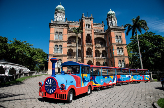 The Science Train, reopened with an electric and sustainable model, provides visitors with a privileged and interactive view of the historic Fiocruz Museum of Life campus.