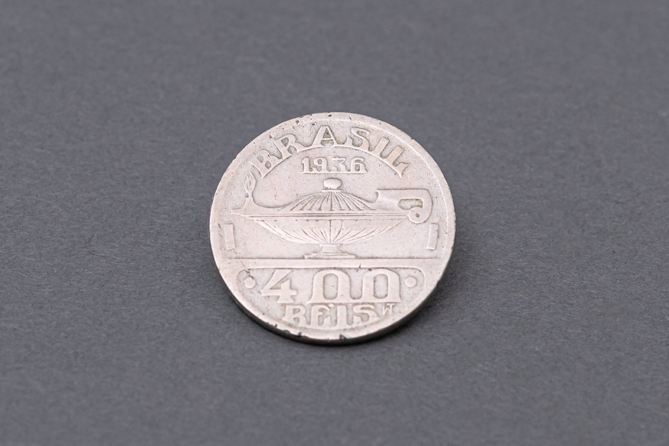 A moeda de 400 réis foi uma homenagem do governo brasileiro ao médico sanitarista Oswaldo Cruz. Ela foi produzida pela Casa da Moeda do Brasil, gravada pelos desenhistas Calmon Barreto e Walter Toledo, e circulou entre os anos de 1936 e 1938. Era comum os gravadores colocarem suas iniciais nas moedas para demarcarem sua autoria, mas esta prática foi abolida em 1945.