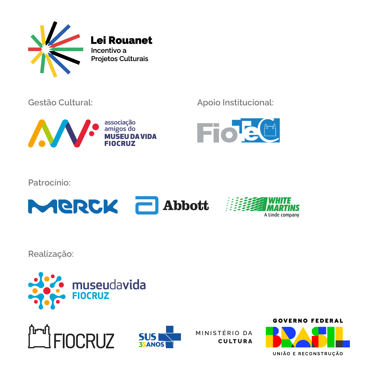 Esses são os patrocinadores e apoiadores do Museu da Vida Fiocruz: